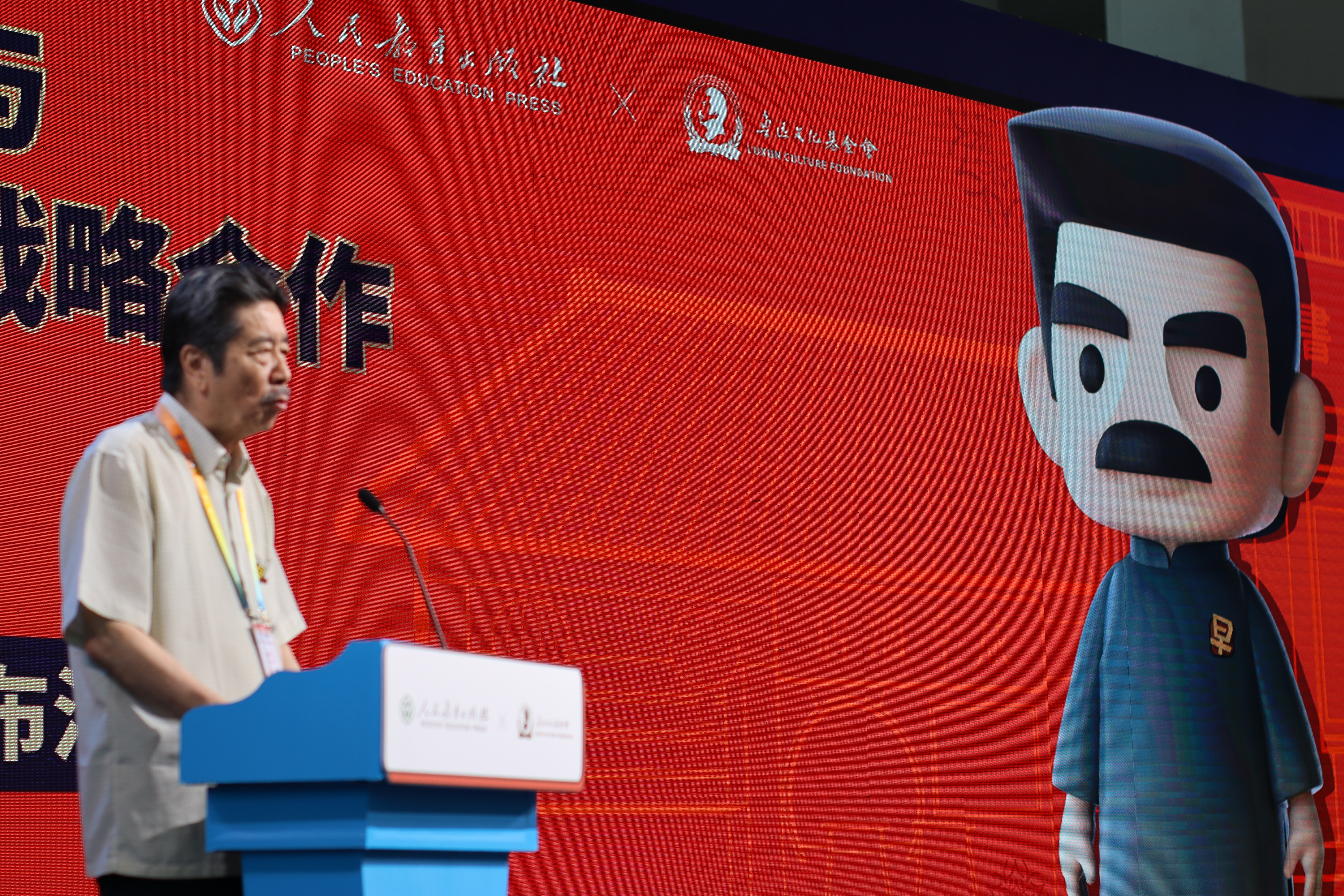 7月25日上午,重庆,第33届全国图书交易博览会,鲁迅文化基金会会长、鲁迅的孙子周令飞谈到当下一些盗版鲁迅文创,很严肃地指出:“大家看看现在的市面上,有些东西真的很不像话。比如说把鲁迅的面容做成像油炸臭豆腐的样子,把他画成黄头发戴金链子的样子,甚至他还被美女蛇缠身,这哪里是尊重?鲁迅先生的姓名肖像都是值得咱们用心呵护的,不管是直接用还是二次创作,都要有正式的授权才行。所以这次我们跟人民教育出版社的正版合作,给现在有点混乱的市场,立下的规矩,让大家看到真正有内涵的鲁迅文创,让更多人通过这些好东西,真正地亲近鲁迅,读懂鲁迅。”